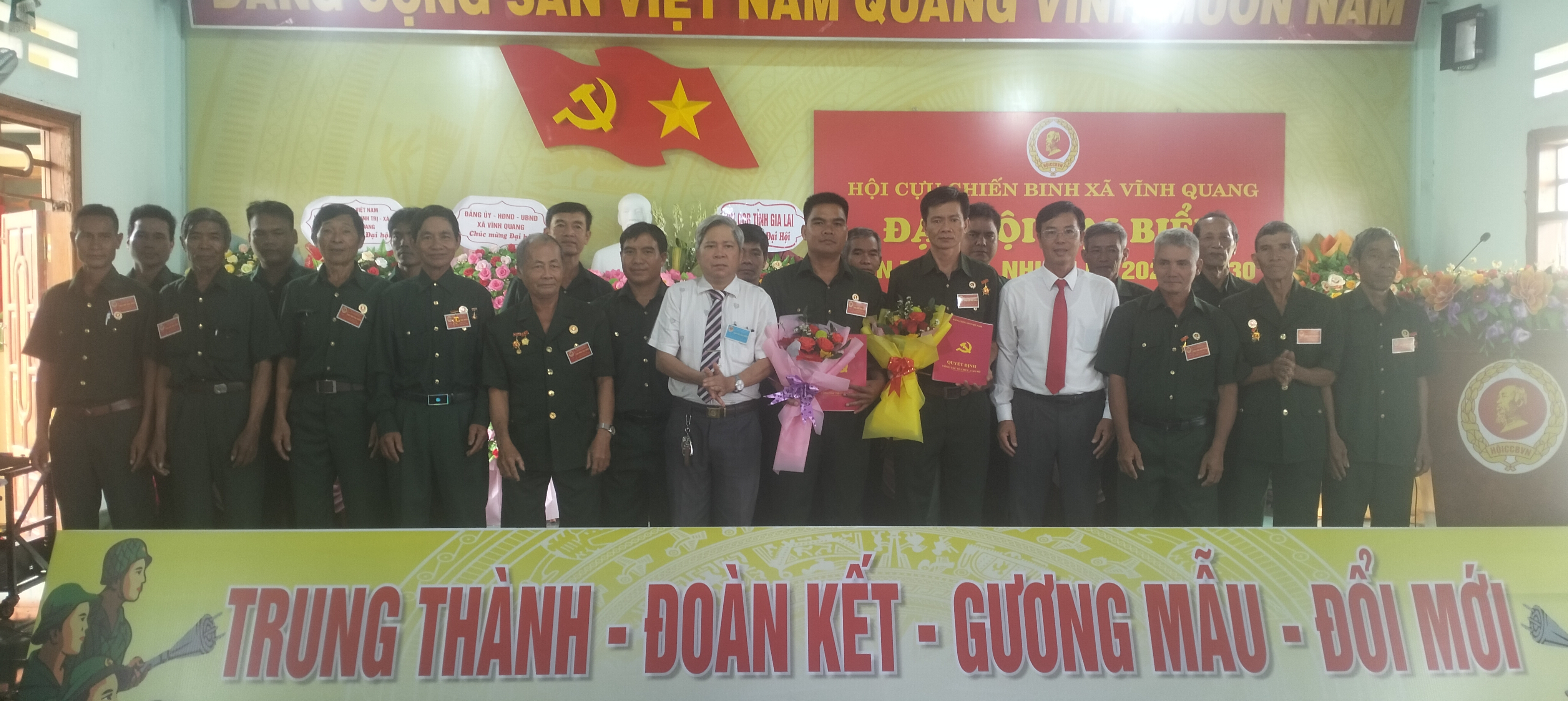 Sáng ngày 28/10/2025, Hội Cựu chiến binh xã Vĩnh Quang long trọng tổ chức Đại hội đại biểu lần thứ VIII, nhiệm kỳ 2025–2030. Dự Đại hội có các đồng chí: Nguyễn Kế đấu – Bí thư Đảng ủy, Chủ tịch HĐND xã; Ngô Tấn Huy – UV.BTV Đảng ủy, Phó Chủ tịch HĐND xã; Đinh Văn Sao – UV.BTV Đảng ủy, Chủ tịch UB.MTTQVN xã; Đinh Mun – UV.BTV Đảng ủy, Trưởng ban xây dựng đảng Đảng ủy xã; Bùi Đức Thắng – UV.BTV Đảng ủy, Chủ nhiệm UBKT Đảng ủy xã; Đỗ Xuân Quang – UV.BTV Đảng ủy, Phó Chủ tịch UBND xã; các đồng chí bí thư chi bộ thôn, làng cùng 50 đại biểu ưu tú đại diện cho hơn 308 hội viên cựu chiến binh toàn xã.