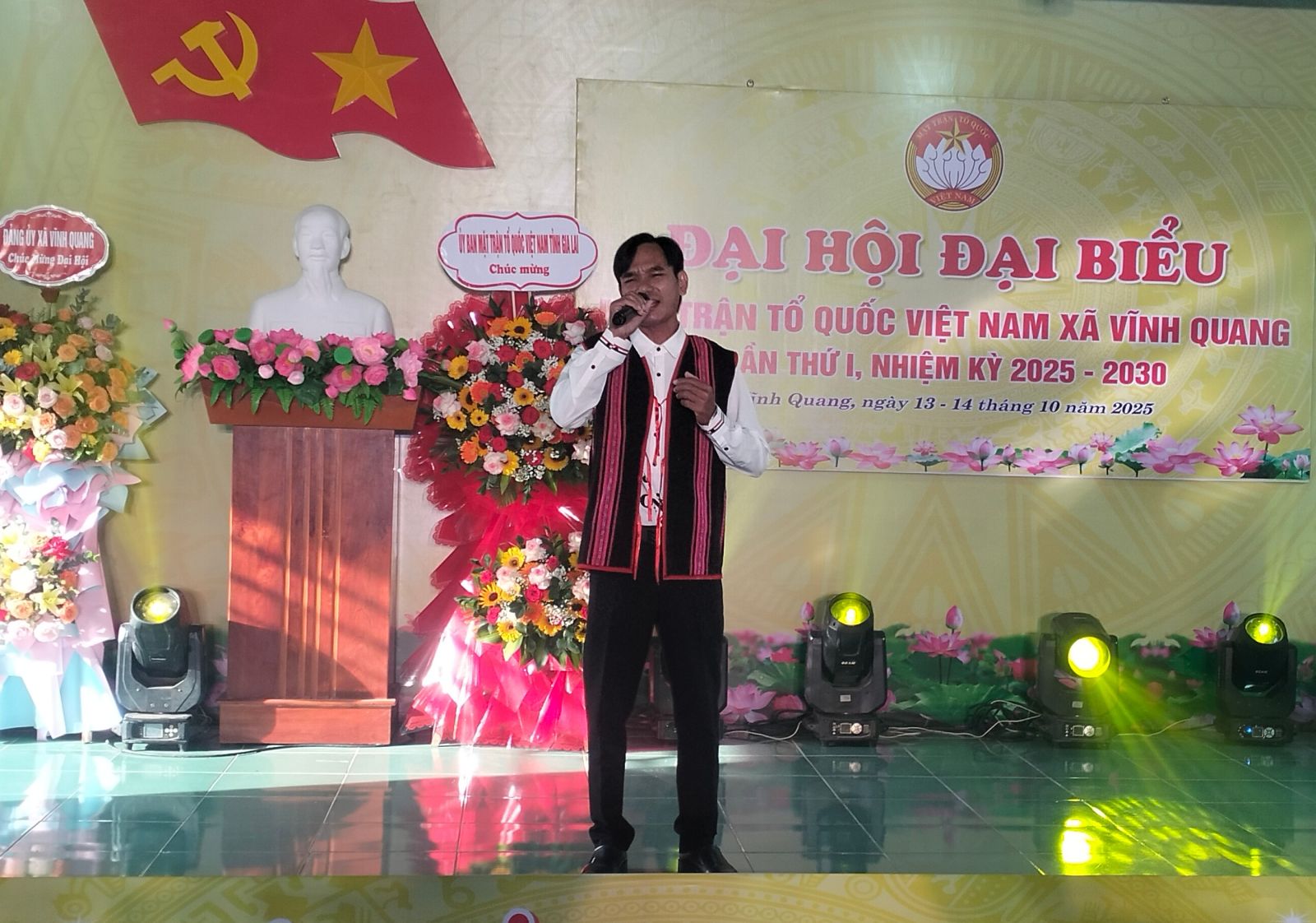 Sáng ngày 14/10/2025, Ủy ban MTTQ Việt Nam xã Vĩnh Quang đã long trọng tổ chức Đại hội đại biểu lần thứ I, nhiệm kỳ 2025–2030 với tinh thần “Đoàn kết – Dân chủ – Đổi mới – Sáng tạo – Phát triển”. Dự và chỉ đạo Đại hội có đồng chí Phạm Mạnh Hùng – Phó Chủ tịch Ủy ban MTTQ Việt Nam tỉnh, Chủ tịch Hội Cựu chiến binh tỉnh Gia Lai; đồng chí Nguyễn Kế Đấu – Bí thư Đảng ủy, Chủ tịch HĐND xã; đồng chí Đinh Thị Thươn – Phó Bí thư Thường trực Đảng ủy xã; đồng chí Trịnh Thành Trung – Phó Bí thư Đảng ủy, Chủ tịch UBND xã, cùng 85 đại biểu tiêu biểu, đại diện cho khối đại đoàn kết toàn dân trên địa bàn xã.