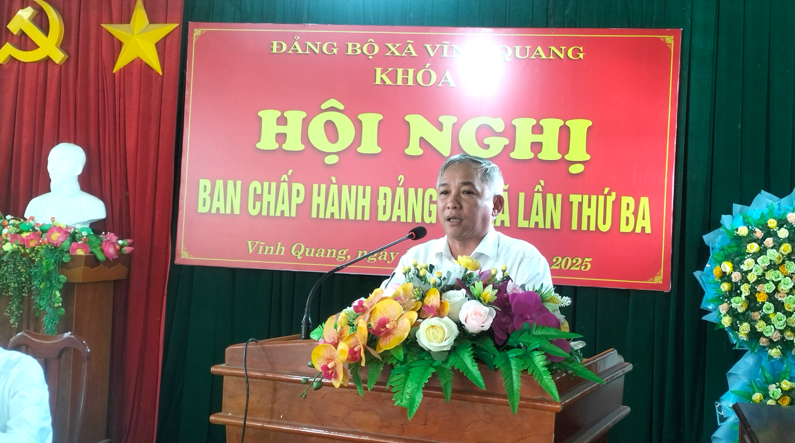 Sáng ngày 10/10/2025, Đảng ủy xã Vĩnh Quang tổ chức hội nghị sơ kết tình hình thực hiện nhiệm vụ 9 tháng đầu năm và triển khai phương hướng, nhiệm vụ trọng tâm 3 tháng cuối năm 2025. Chủ trì hội nghị Ông Nguyễn Kế Đấu – Bí thư Đảng ủy, Chủ tịch HĐND xã.