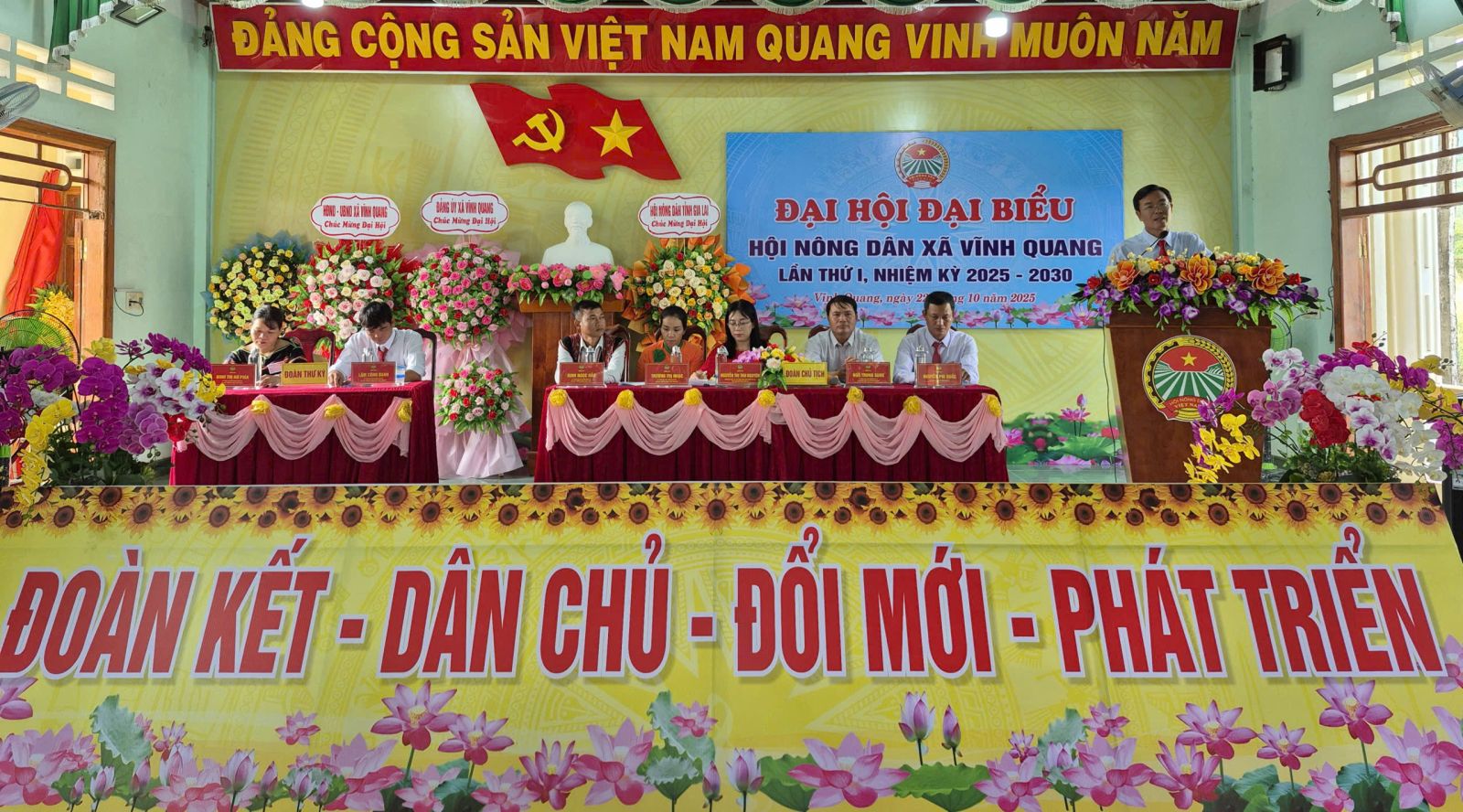Sáng ngày 22.10, Hội Nông dân xã Vĩnh Quang đã tổ chức Đại hội đại biểu lần thứ I, nhiệm kỳ 2025-2030. Tham dự Đại hội có các đồng chí Nguyễn Kế Đấu - Bí thư Đảng ủy, Chủ tịch HĐND xã; Ngô Tấn Huy - Phó Chủ tịch HĐND xã; Đỗ Xuân Quang - Phó Chủ tịch UBND xã; Đinh Văn Sao - Chủ tịch Ủy ban Mặt trận Tổ quốc Việt Nam xã. Đại hội có sự tham dự của 60 đại biểu chính thức là những cán bộ, hội viên, nông dân tiêu biểu đại diện cho hơn 1.700 cán bộ, hội viên, nông dân trong toàn xã.