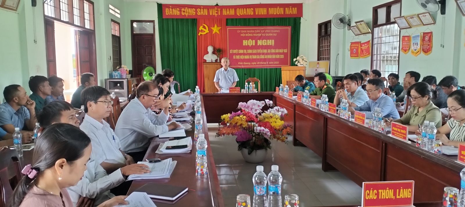 Sáng ngày 23/9/2025, Hội đồng Nghĩa vụ quân sự xã Vĩnh Quang đã tổ chức Hội nghị xét duyệt chính trị, chính sách trong tuyển chọn và gọi công dân nhập ngũ năm 2026.