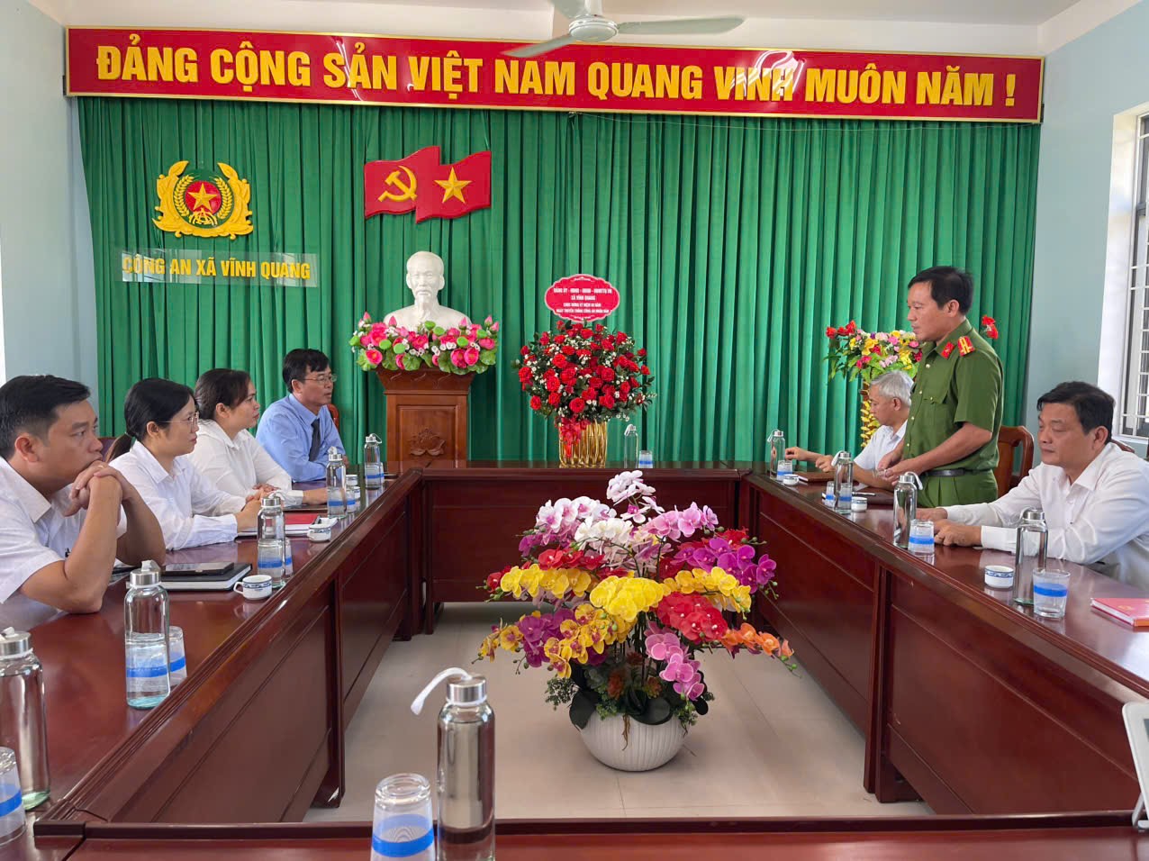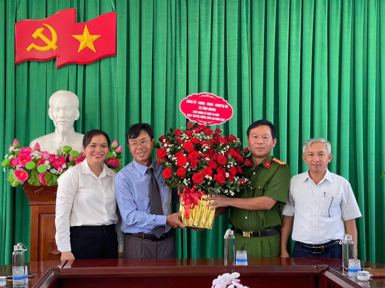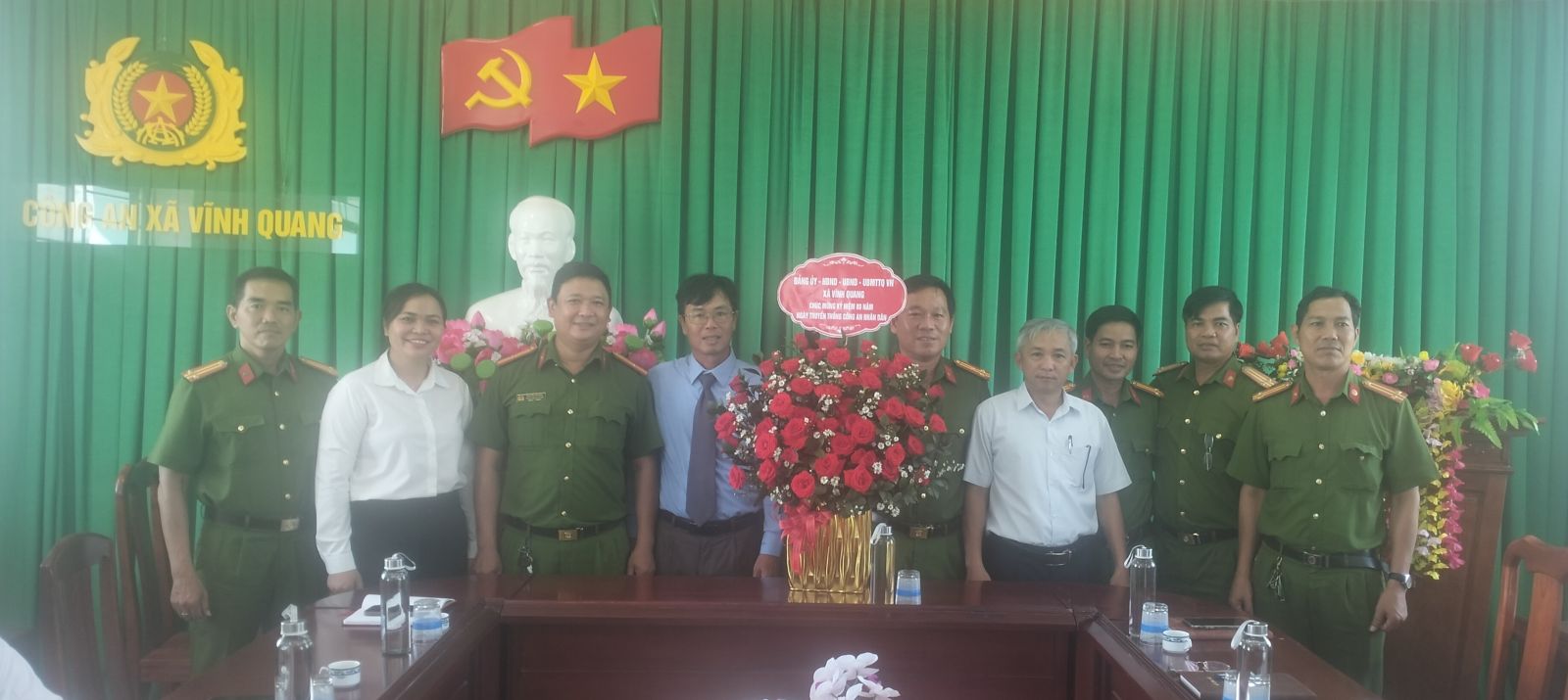 Dịp này, lãnh đạo Đảng ủy, HĐND, UBND, Ủy ban MTTQ Việt Nam xã Vĩnh Quang đã tặng lẵng hoa tươi thắm chúc mừng và biểu dương những thành tích của lực lượng Công an xã Vĩnh Quang đã đạt được trong thời gian qua.